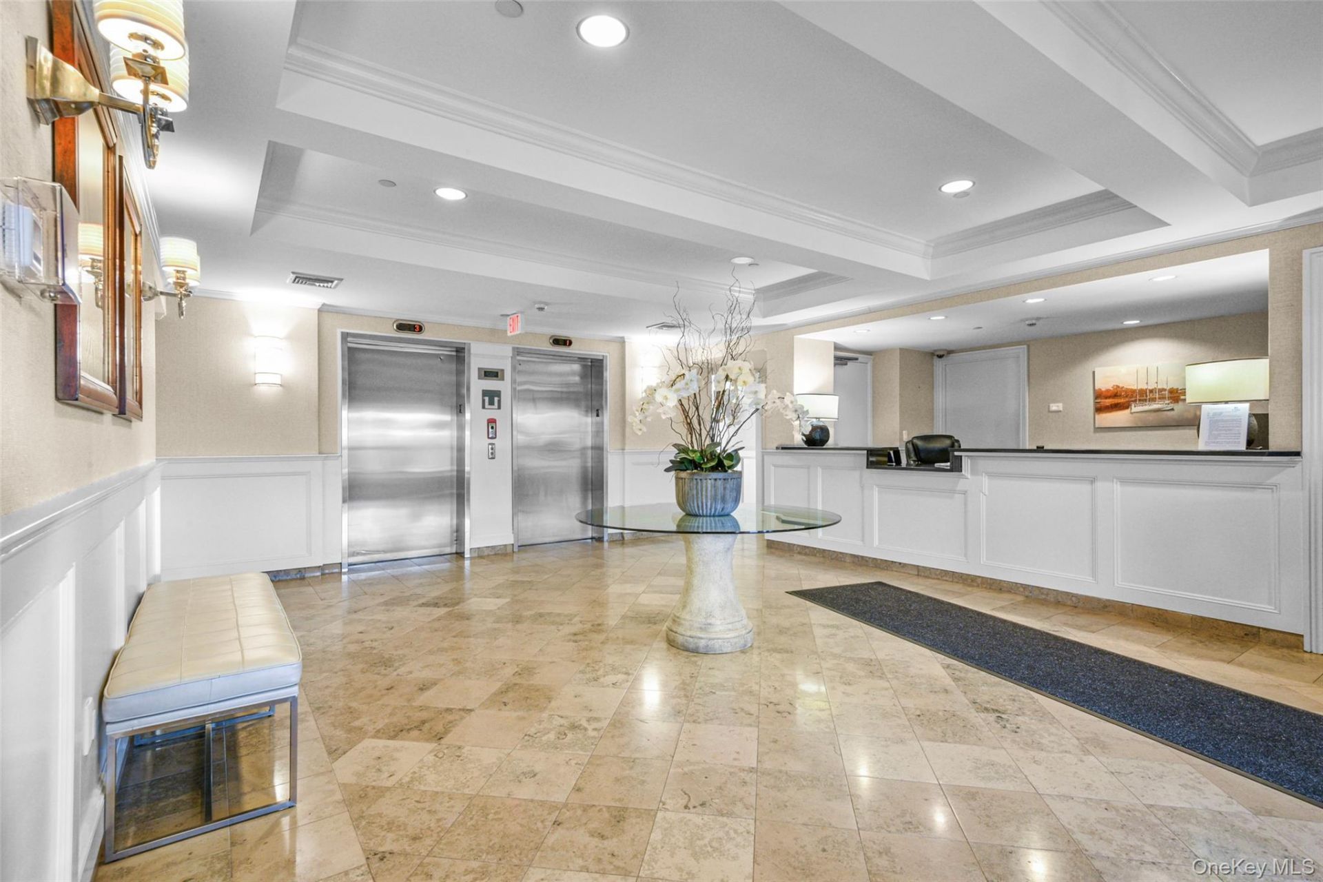 Step into this beautifully maintained 1,200 sq. ft. third-floor apartment at the highly sought-after Sweetwater condominium, located in the vibrant heart of Mamaroneck Village. This inviting two-bedroom, two-bathroom home offers a peaceful retreat and is a corner unit with courtyard views and an abundance of natural light. The open-concept layout boasts hardwood floors and recessed lighting throughout, creating an airy and modern atmosphere. The spacious living room features a tray ceiling and a stunning custom built-in with bookcase, storage and television. This flows seamlessly into the dining area, for both relaxation and entertaining. The contemporary kitchen is equipped with designer, stainless steel appliances, granite countertops, and a breakfast bar. The spacious primary bedroom offers a vaulted ceiling, a luxurious en-suite bathroom with double vanities, and a large walk-in closet. The unit is rounded out by a large second bedroom, a second full marble bath, and an in-unit Miele washer and dryer in a large storage utility closet. Residents of this exceptional building enjoy a wide range of amenities, including doormen with concierge service, a rooftop garden, a state-of-the-art fitness center, a community room with a kitchenette, a cozy library, and a garage with a dedicated parking spot. With the train, shops, restaurants, and parks just moments away, this home delivers unmatched convenience.