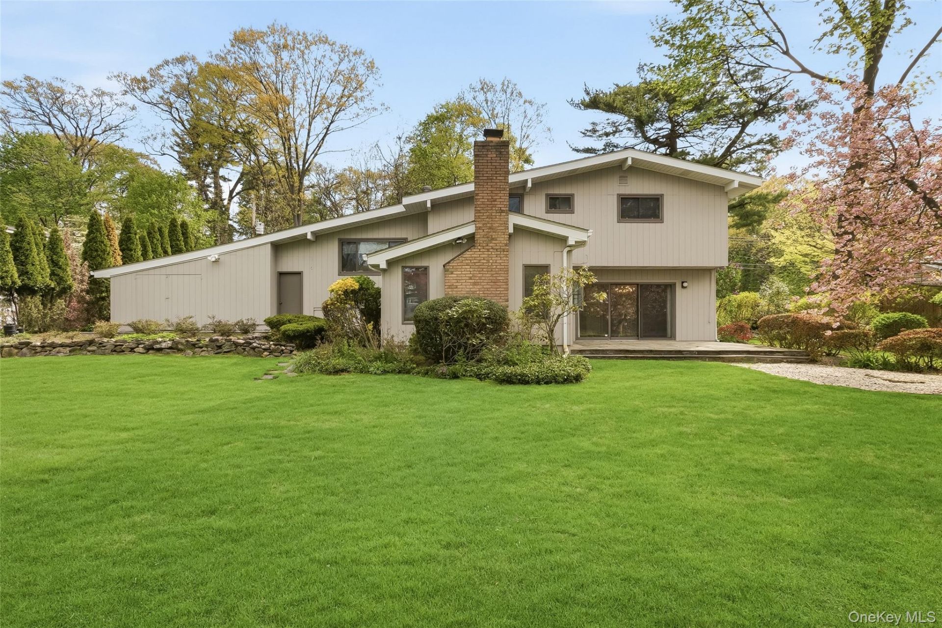 Nestled in the sought-after Poet's Corner neighborhood, this beautifully maintained mid-century Split-Level home offers the perfect balance of style, comfort, and convenience. Set on a spectacular 0.35-acre level lot, the property boasts a serene, bucolic setting while remaining just moments from schools, shops, restaurants and the 35-minute express train to New York City. Inside and out, this three Bedroom/two-and-a-half Bath home is thoughtfully designed for both everyday living and entertaining groups of any size. The inviting family room serves as the heart of the home, highlighted by a charming wood-burning fireplace, skylight filling the space with natural light, ceiling fan for year-round comfort, and a flat-screen TV - perfect for relaxing or hosting gatherings. Sliding glass doors from both the family room and the oversized dining room create a seamless indoor-outdoor flow, opening onto a large patio ideal for dining al fresco or enjoying the expansive backyard. However you enjoy the great outdoors - basking in the quiet or creating some noise; relaxing alone or with friends or pets; eating, playing, sleeping - this special property will offer the perfect backdrop! Inside, the updated kitchen is a standout, featuring beautiful wood cabinetry, granite countertops, and stainless steel appliances (Bosch 5-burner gas stovetop, Bosch dishwasher, GE double oven, Kitchenaide refrigerator). The nearby Breakfast Nook, extra-large Dining Room and patio provide multiple dining venues for guests. The large Living Room with gleaming wood floors, spans from the front to the back of the home, providing ample space for socializing with many or relaxing with just a few. The attached 2-car garage and storage shed complete the ground level and, together with the lower level, offer tons of space for storage. With its tranquil setting, thoughtful updates, and unbeatable location, this home offers a rare opportunity to enjoy peaceful suburban living without sacrificing convenience!